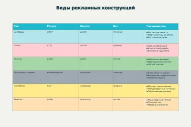 Основные виды рекламных металлоконструкций и их характеристики