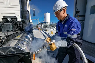 Сжиженный природный газ (СПГ) — это обычный природный газ, из которого удалили примеси и охладили до −162 °C. При такой температуре метан переходит в жидкое состояние и уменьшается в объёме примерно в 600 раз: из 600 м³ газа получается всего 1 м³ криогенной жидкости. Благодаря этому СПГ можно транспортировать и хранить в компактных изотермических ёмкостях без экстремально высокого давления, что делает его идеальным топливом для тяжёлого коммерческого транспорта.
